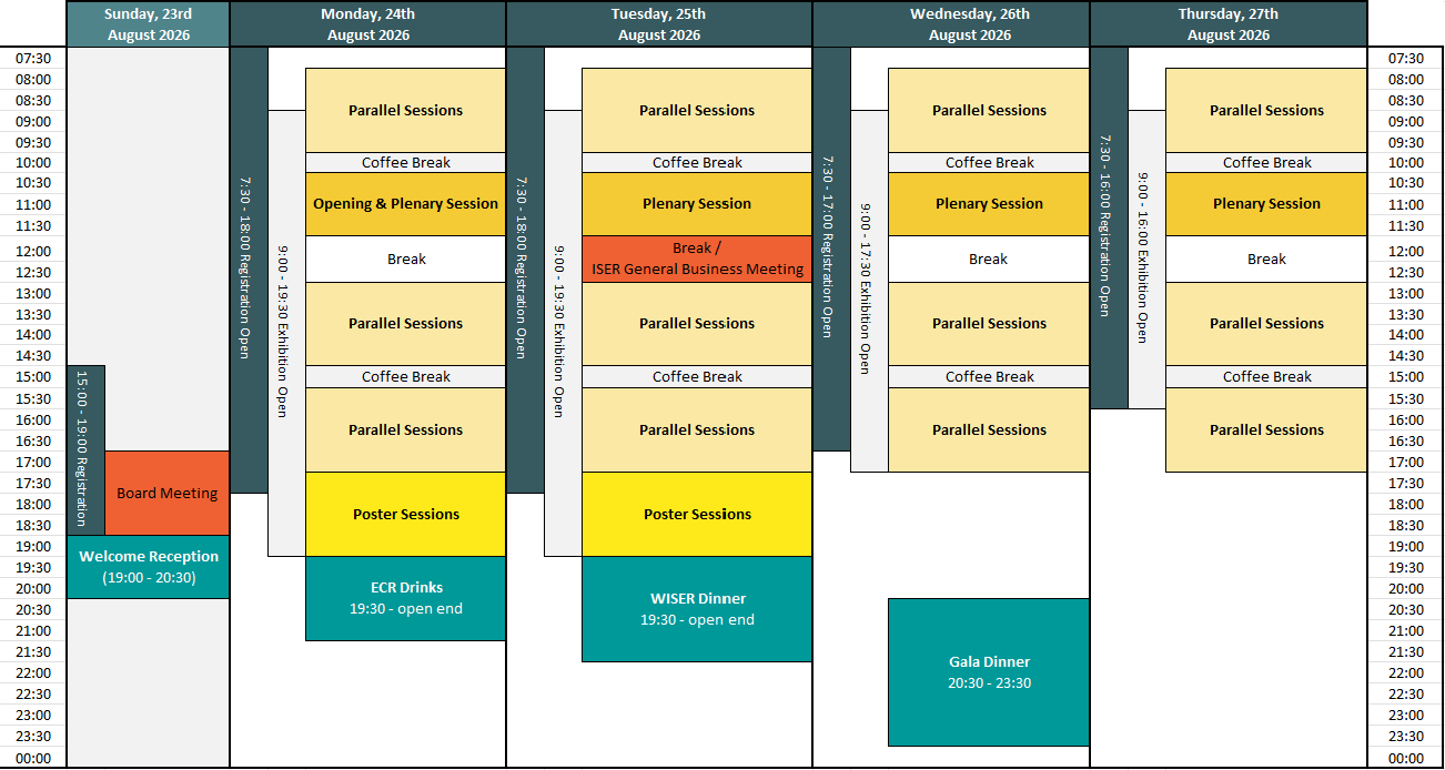 | 12:00 – 13:00 | Break / ISER General Business Meeting |